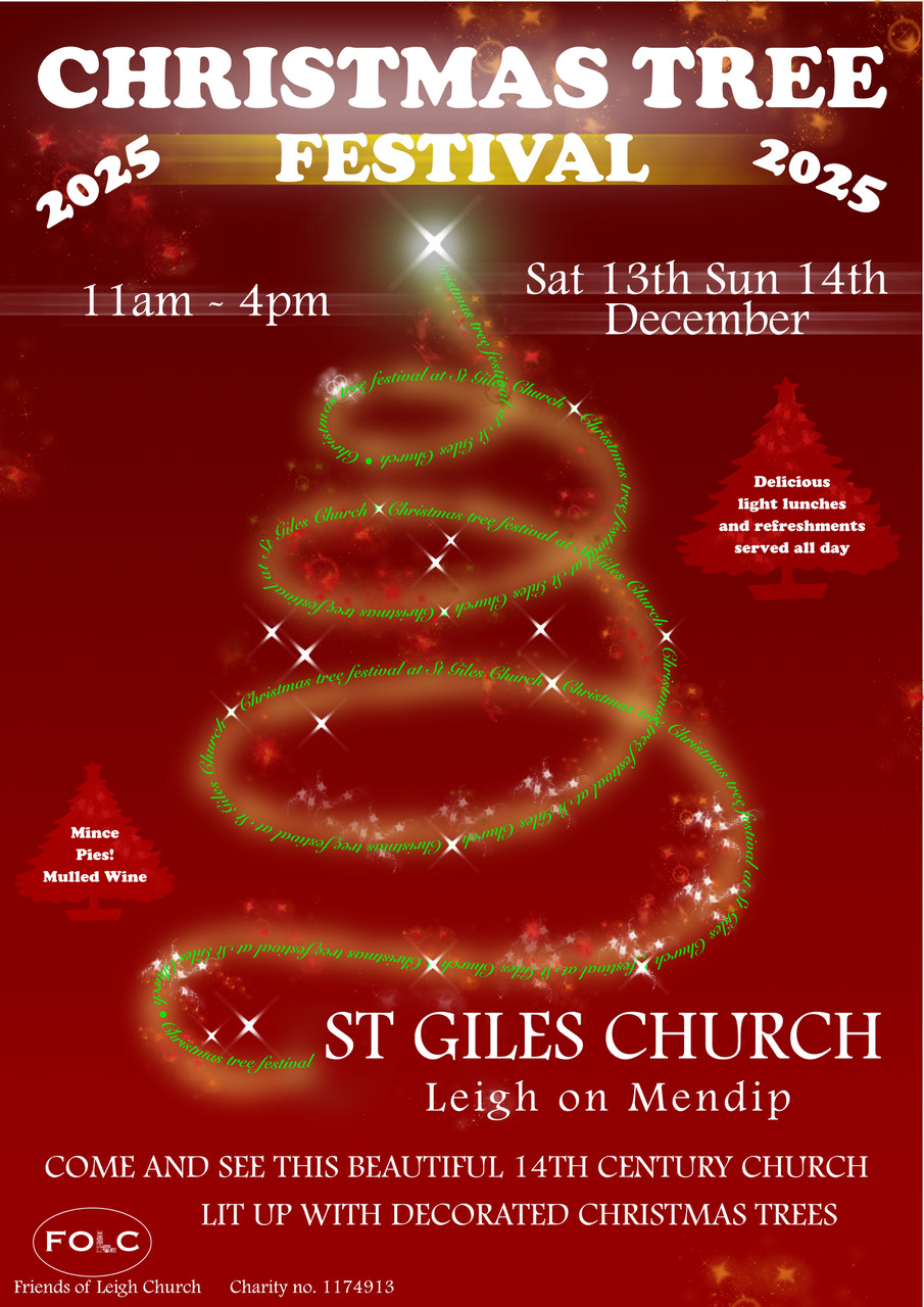 Thursday 27th November 10:30am to 12:00COFFEE MORNING (St Giles Church) Do drop in, everyone welcome. A Friends of the Leigh Church (FOLC) event.