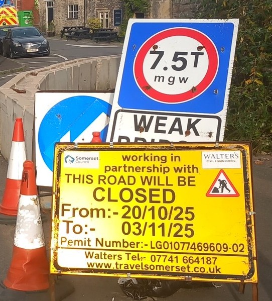 ![]() ROAD CLOSURE The Bridge at Stoke St Michael from 20 October to 3 November. (Thanks to Lally for the photo!) Issued 25 October 2025 | |